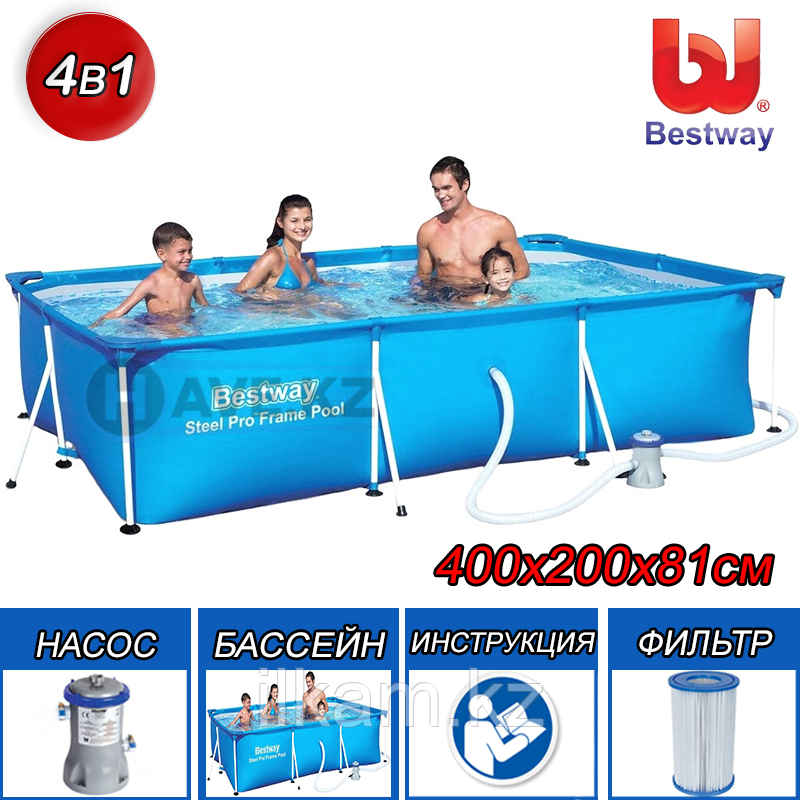 Прямоугольный каркасный бассейн Bestway "Steel Pro Frame Pool" 56424, 400x200x81 см